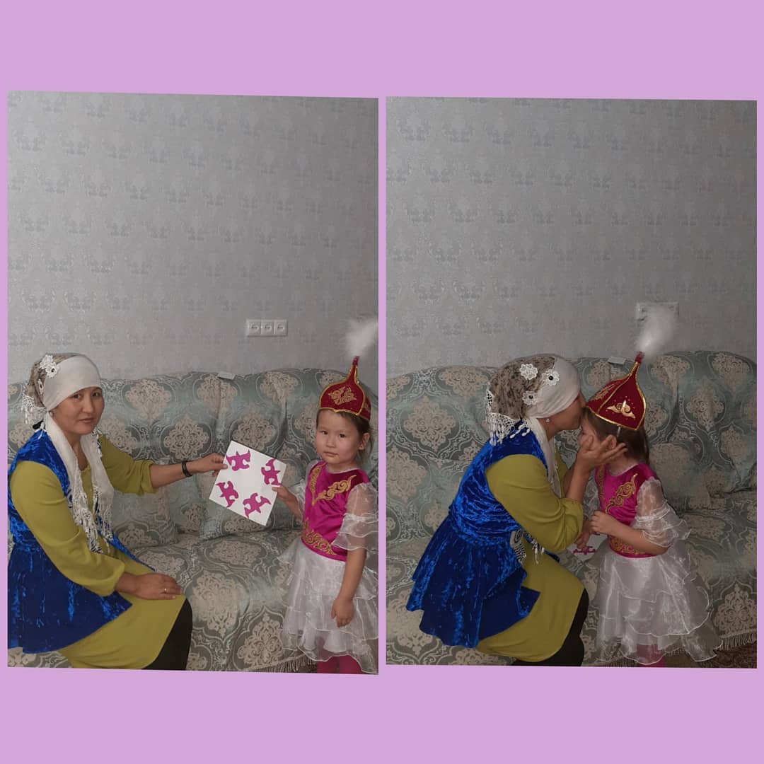 "Ақ орамал" акциясына орай "Күншуақ" тобының бүлдіршіні Сүндетқали Нұрайхан өз қолынан жасаған орамалын анасына сыйға тартты.