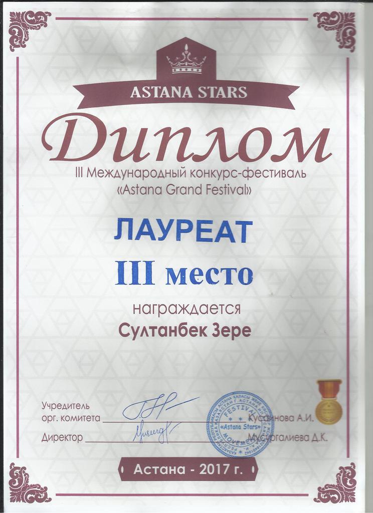 ІІІ Республикалық "Жұлдыздар аллеясы" шығармашылық байқауында "эстрадалық вокал" номинациясы бойынша Баймағамбетова Мерей "Бас жүлде", Өтеген Нұрайша,Зинулла Ясина І орын, "Балапан" тобы: Нұрлан Айзере, Әскербай Әдемай, Бердіғали Сымбат, Жиенбаева Мадина ІІ орынға ие болды.